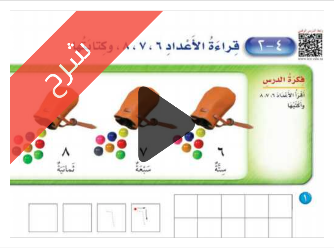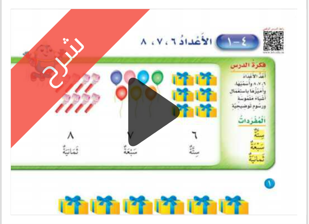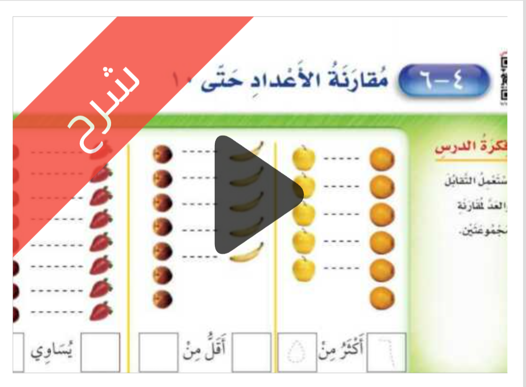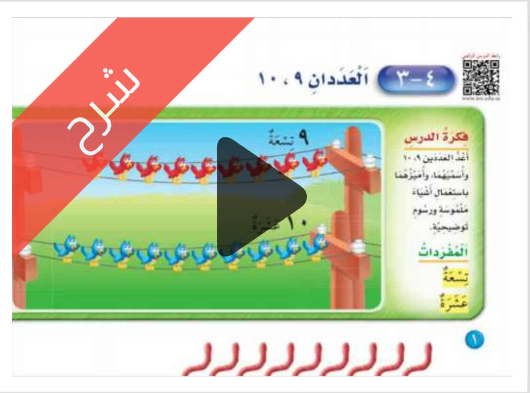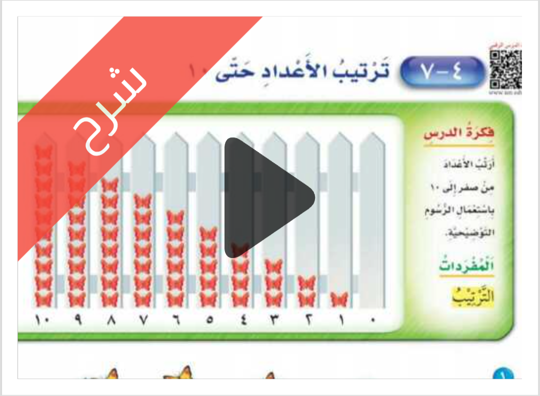 شرح دروس الفصل الرابع الأعداد حتى 10 مادة الرياضيات للصف اول ابتدائي الفصل الدراسي الاول ف1