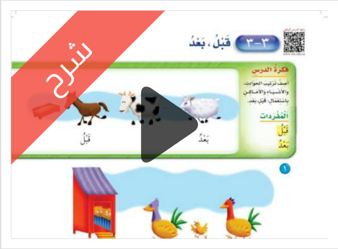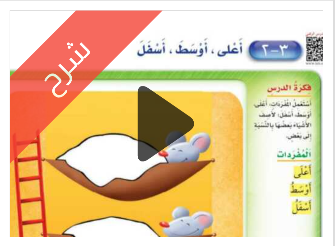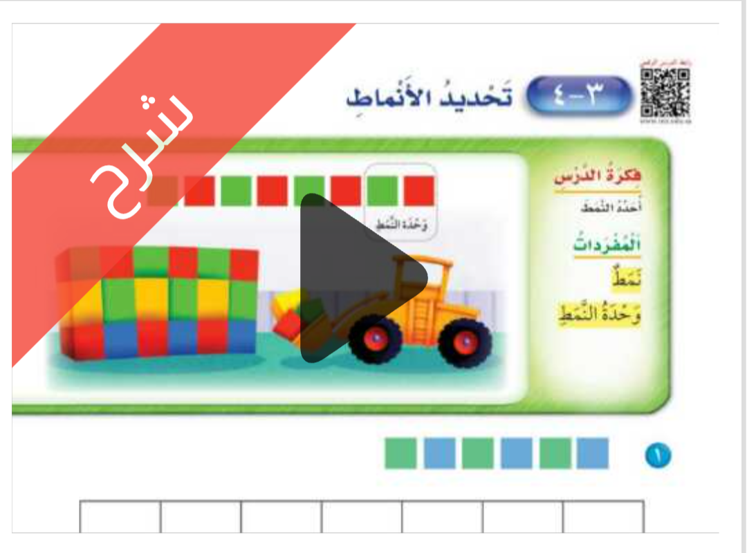 شرح دروس الفصل الثالث الموقع والنمط مادة الرياضيات للصف اول ابتدائي الفصل الدراسي الاول ف1