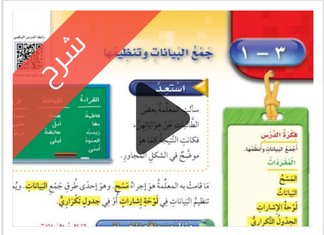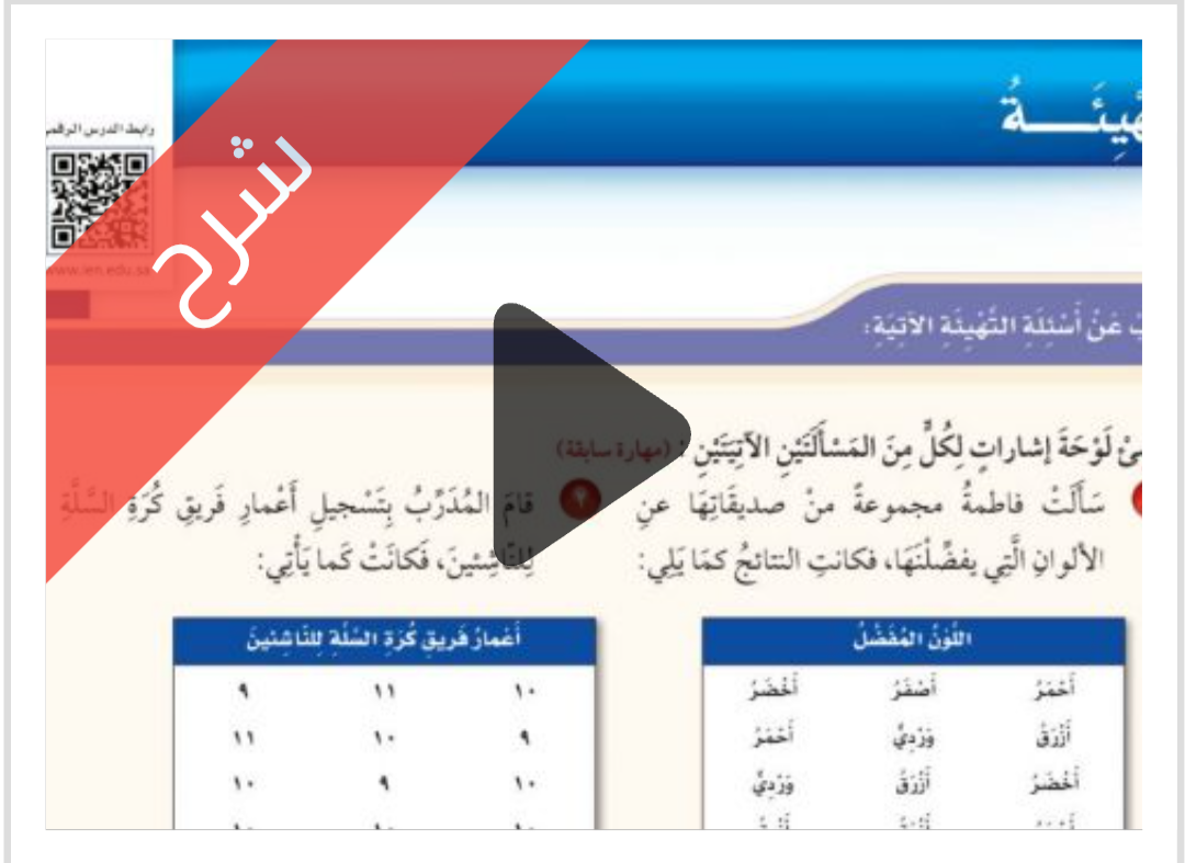 شرح دروس الفصل الثالث تنظيم البيانات وعرضها وتفسيرها رياضيات رابع ابتدائي الفصل الدراسي الاول ف1