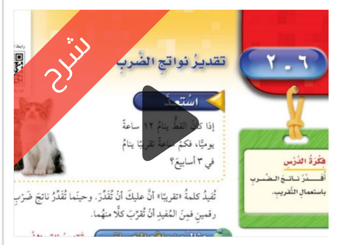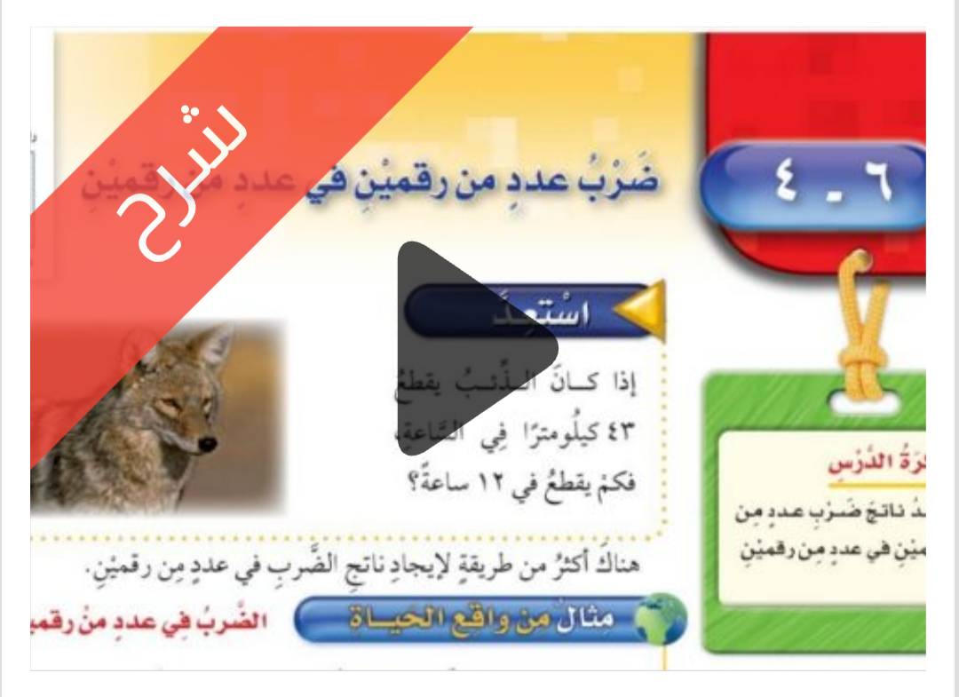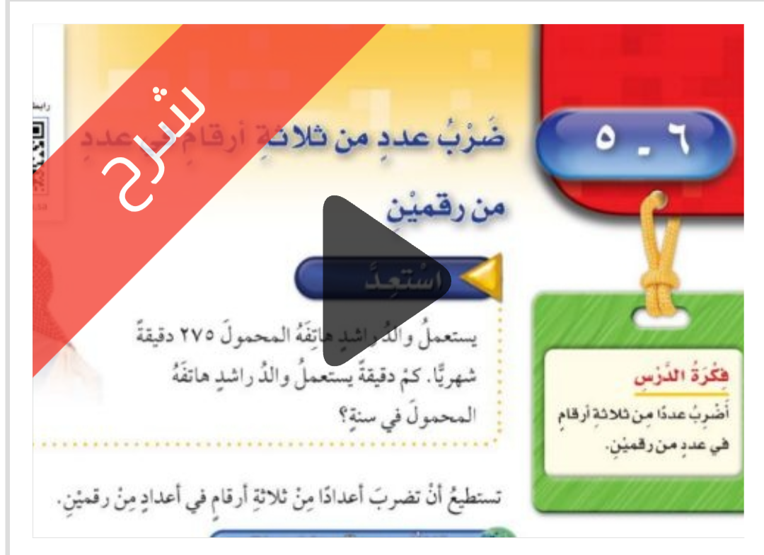 شرح دروس الفصل السادس الضرب في عدد من رقمين مادة الرياضيات رابع ابتدائي الفصل الدراسي الأول ف١