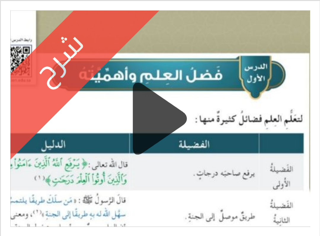 شرح دروس مادة التوحيد خامس ابتدائي الفصل الدراسي الاول ف1