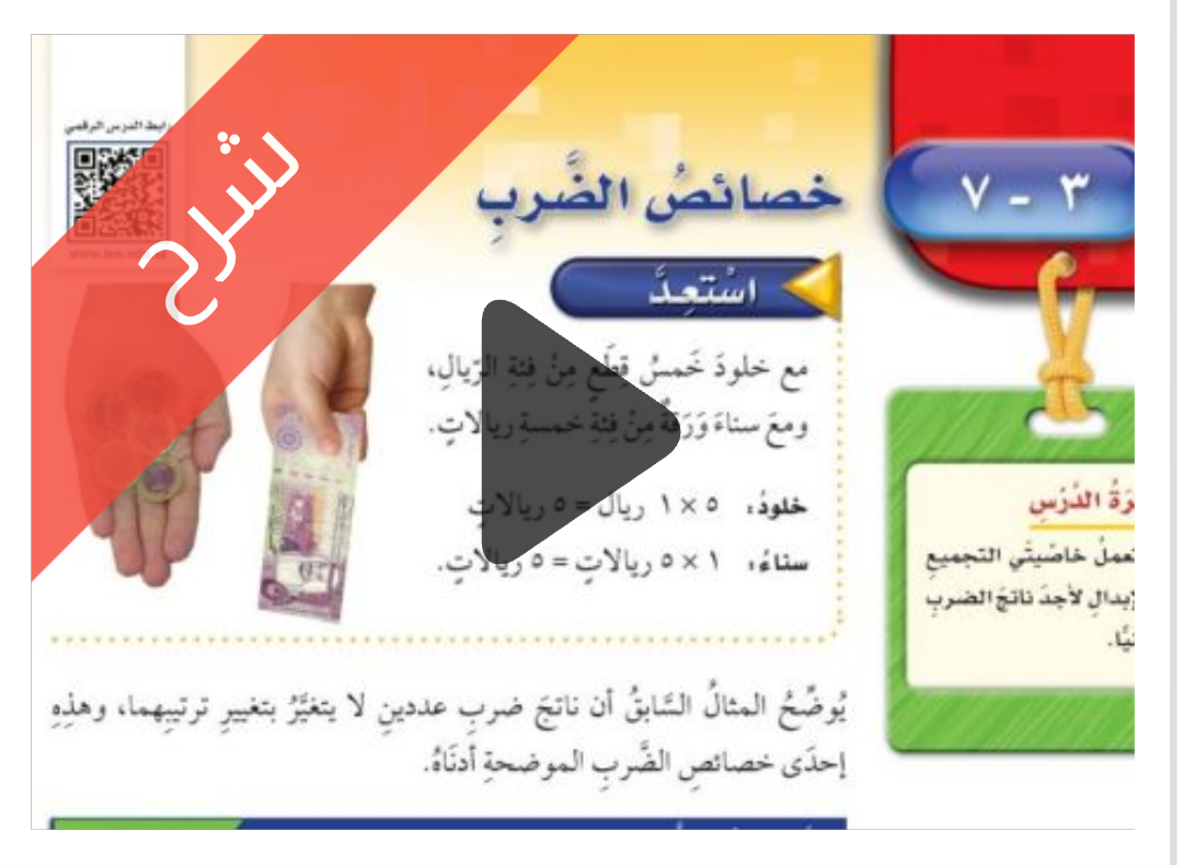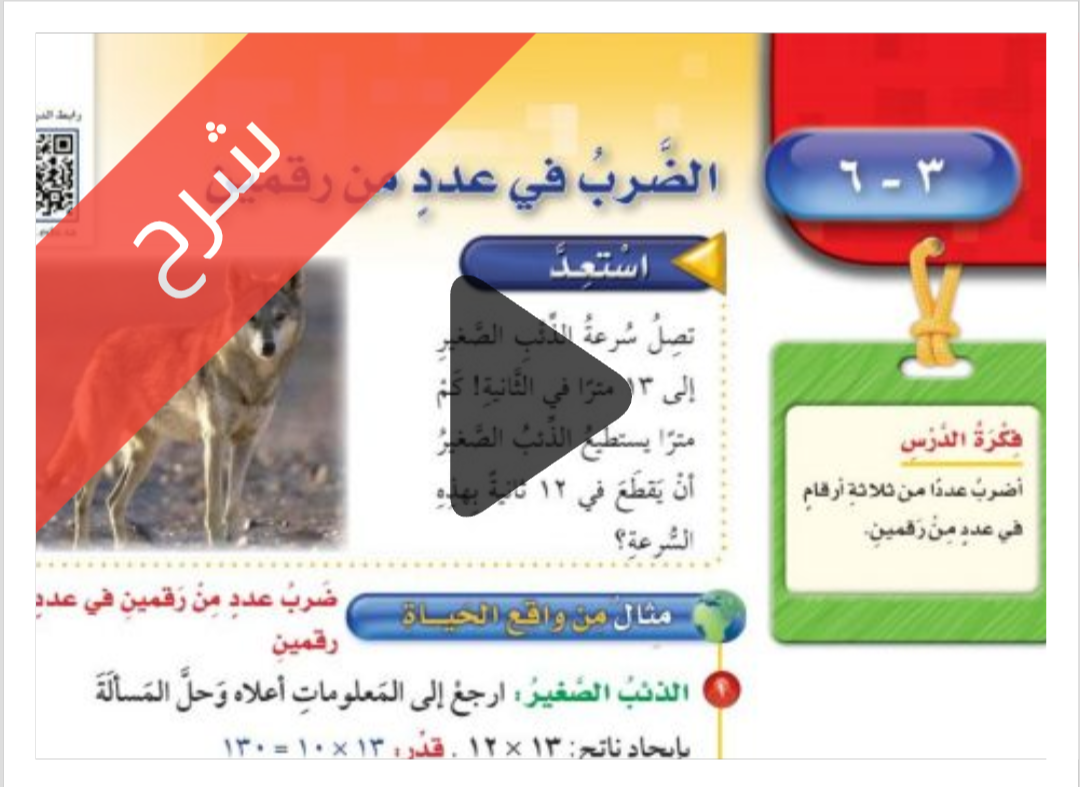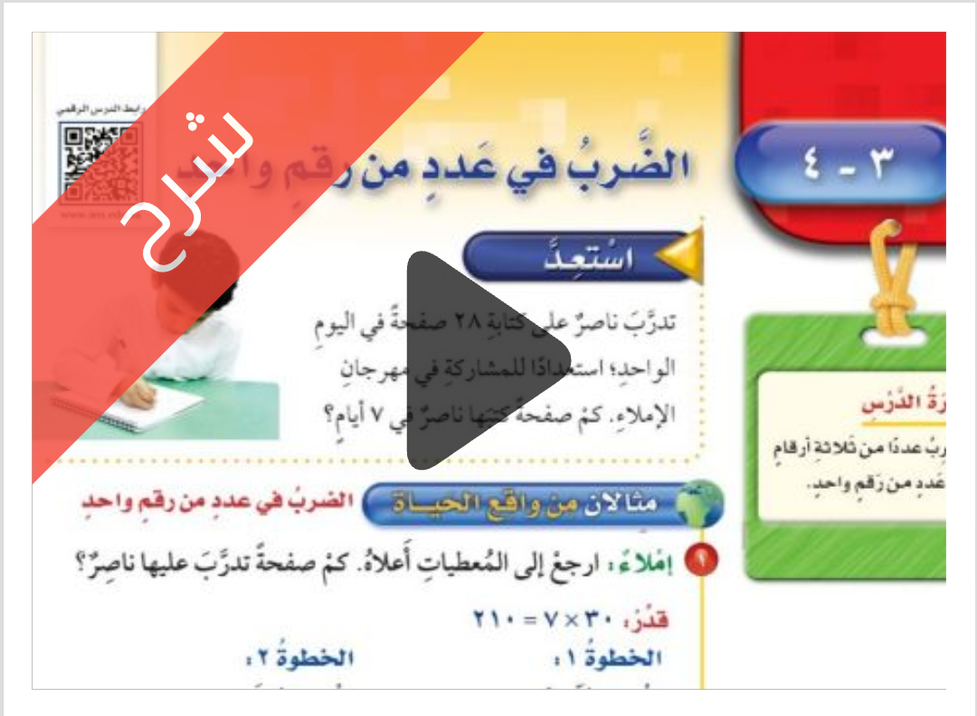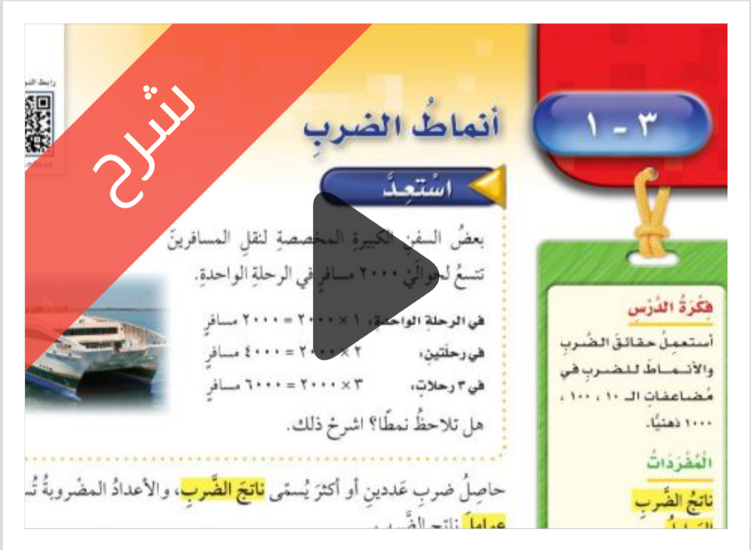 شرح دروس الفصل الثالث الضرب مادة الرياضيات للصف الخامس الابتدائي الفصل الدراسي الاول ف1