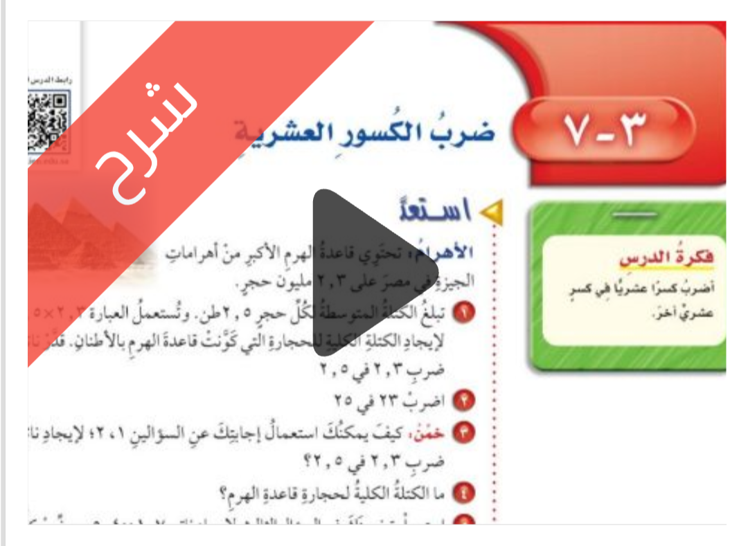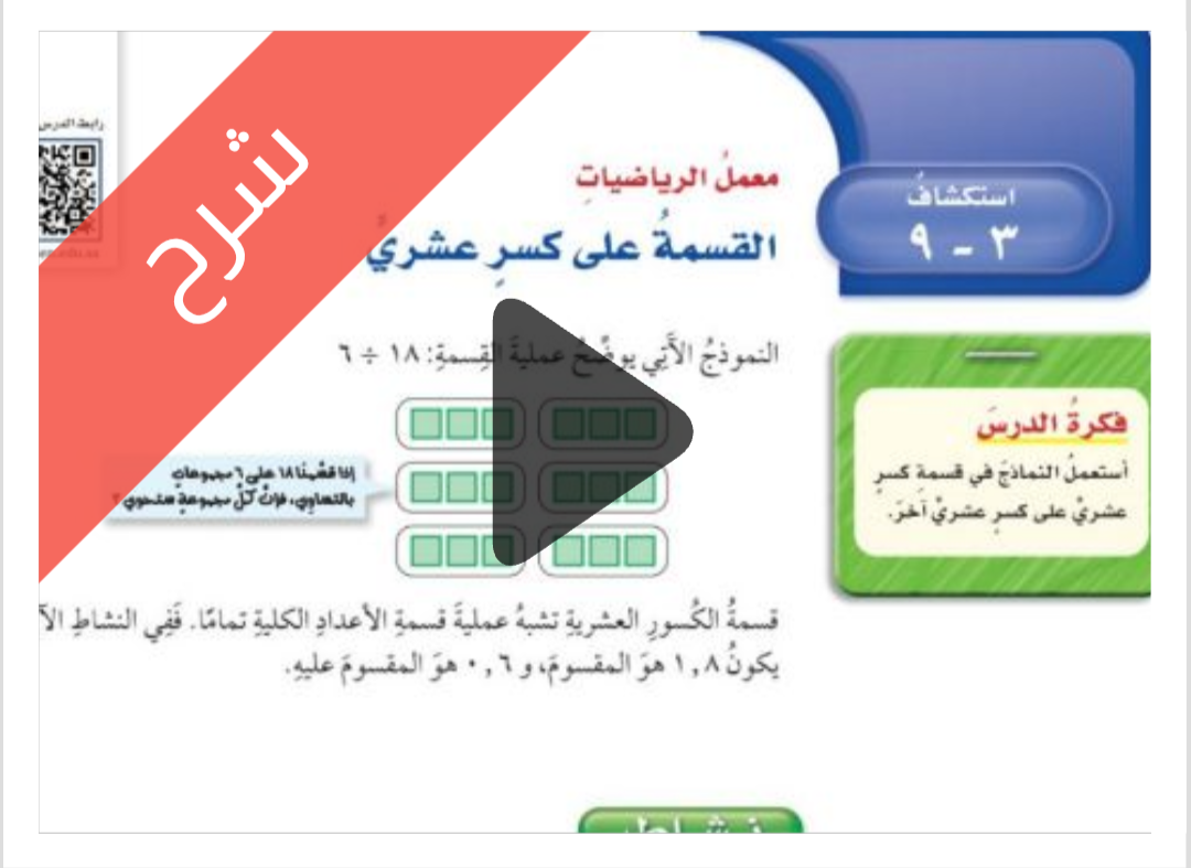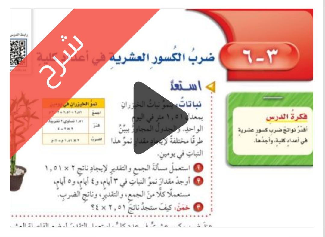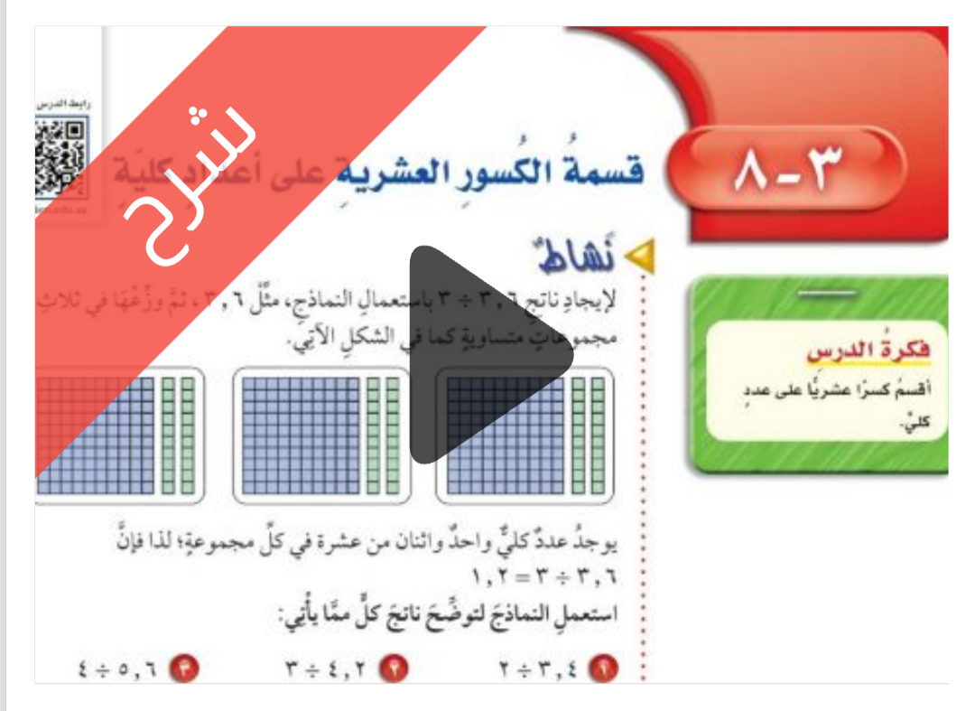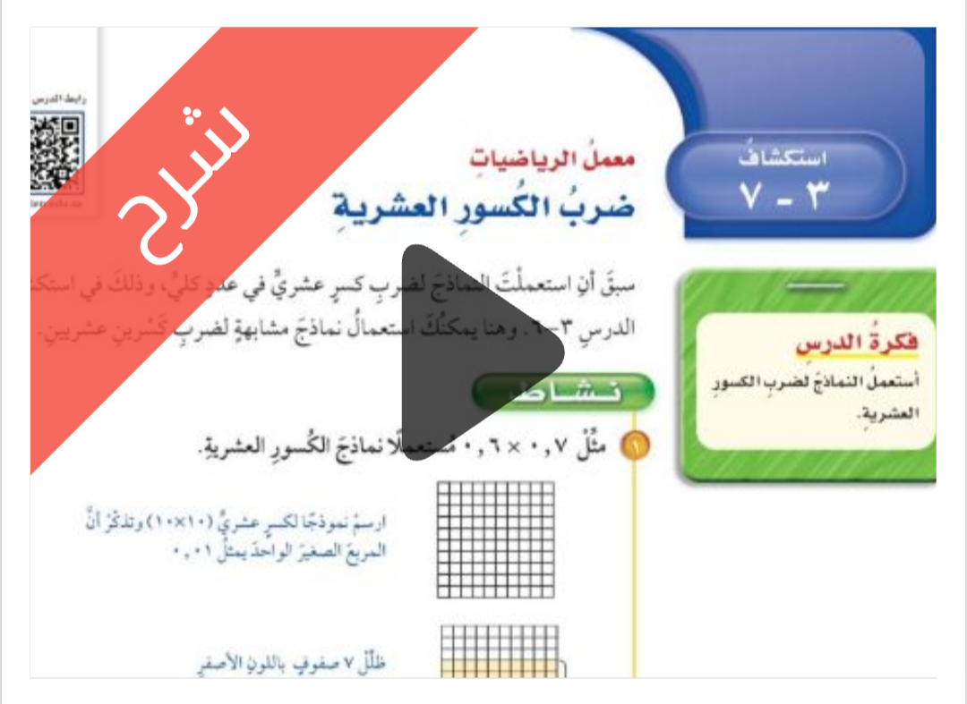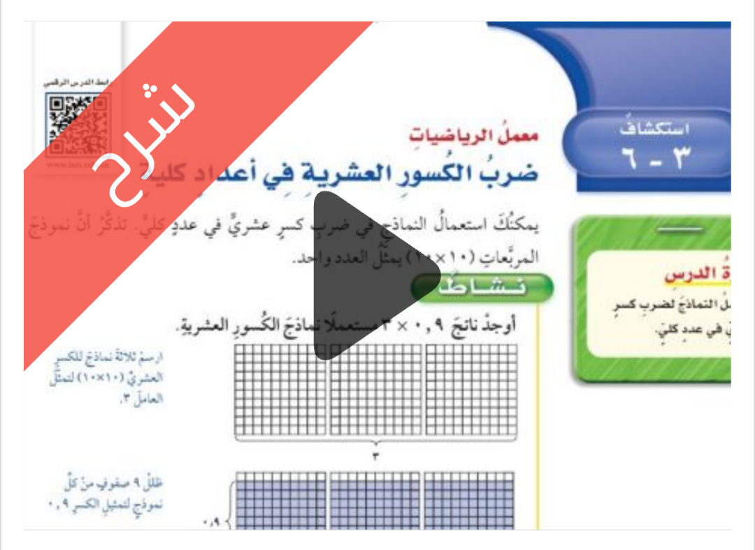 شرح دروس الفصل الثالث العمليات على الكسور العشرية رياضيات سادس ابتدائي الفصل الدراسي الاول ف1