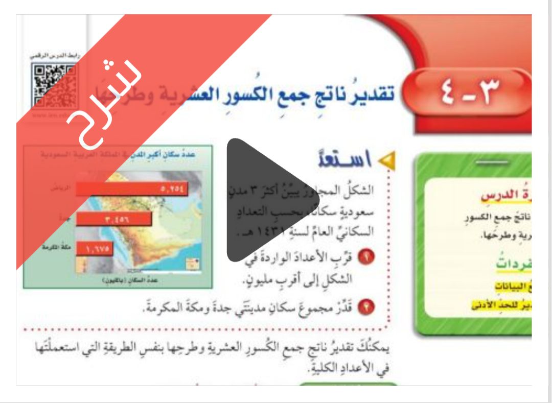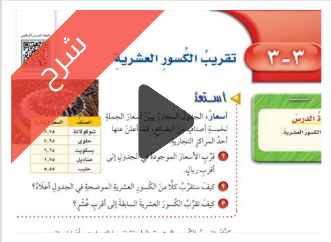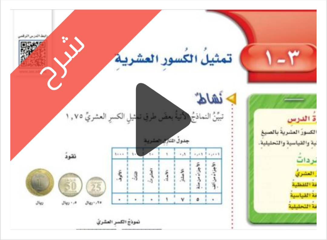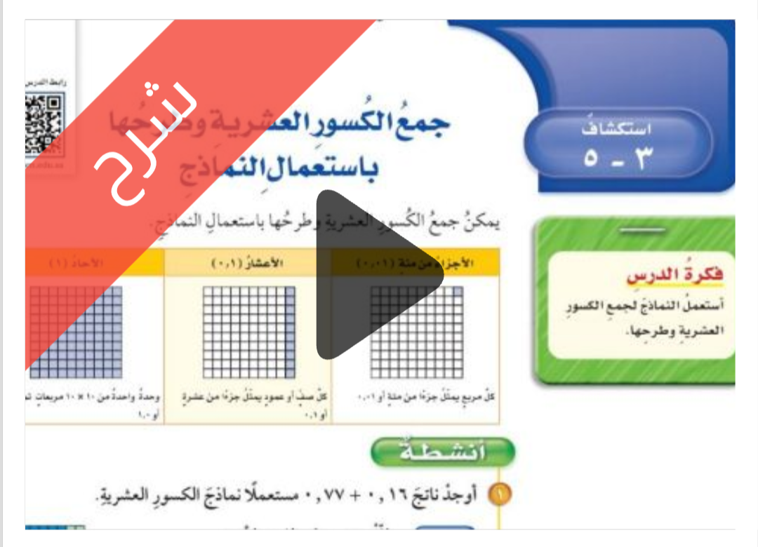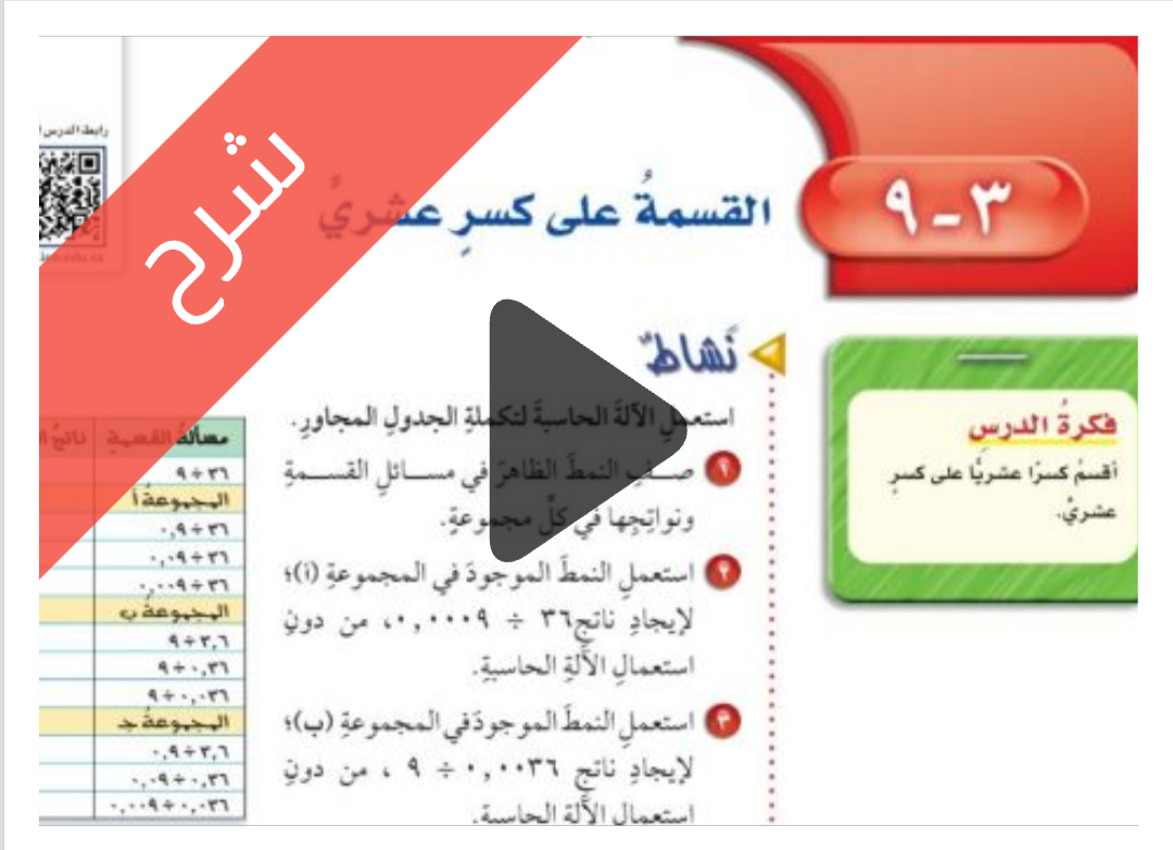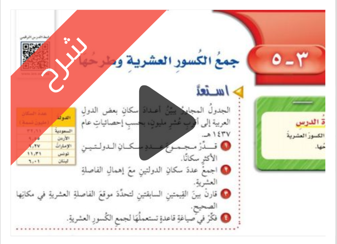 شرح دروس الفصل الثالث العمليات على الكسور العشرية رياضيات سادس ابتدائي الفصل الدراسي الاول ف1
