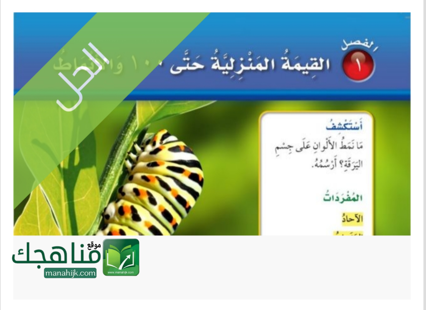 حل الفصل الأول القيمة المنزلية حتى ١٠٠ والانماط