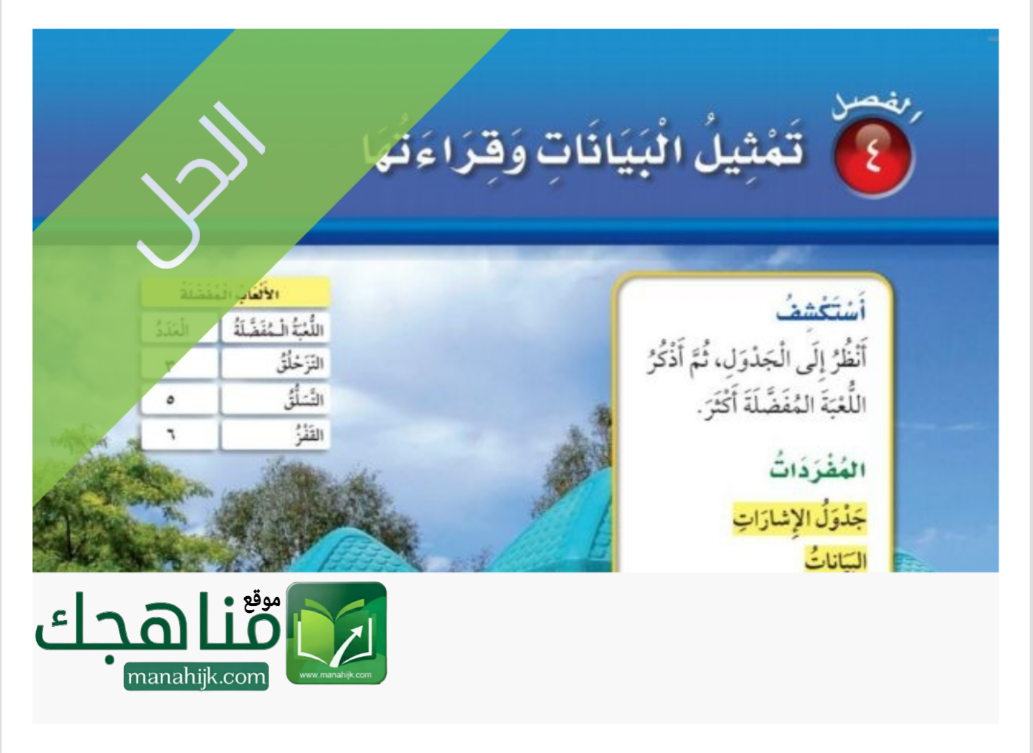 حل الفصل الرابع تمثيل البيانات وقراءتها
