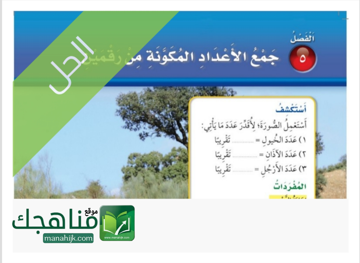 حل الفصل الخامس جمع الأعداد المكونة من رقمين