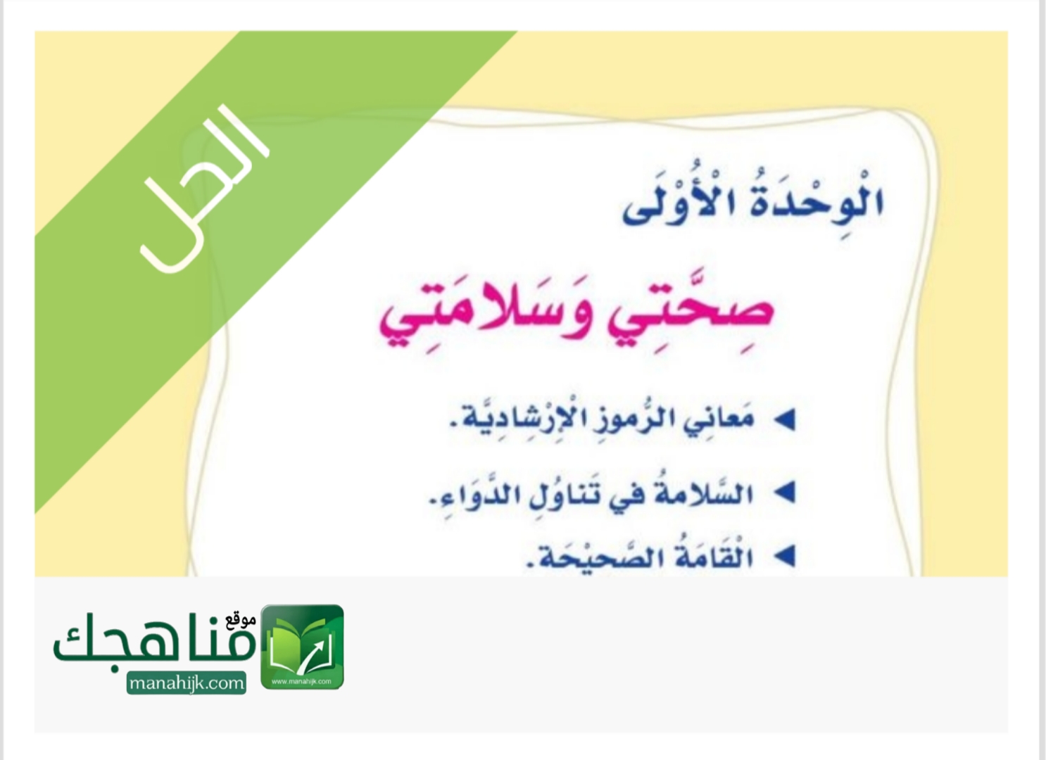 حل الوحدة الأولى صحتي وسلامتي
