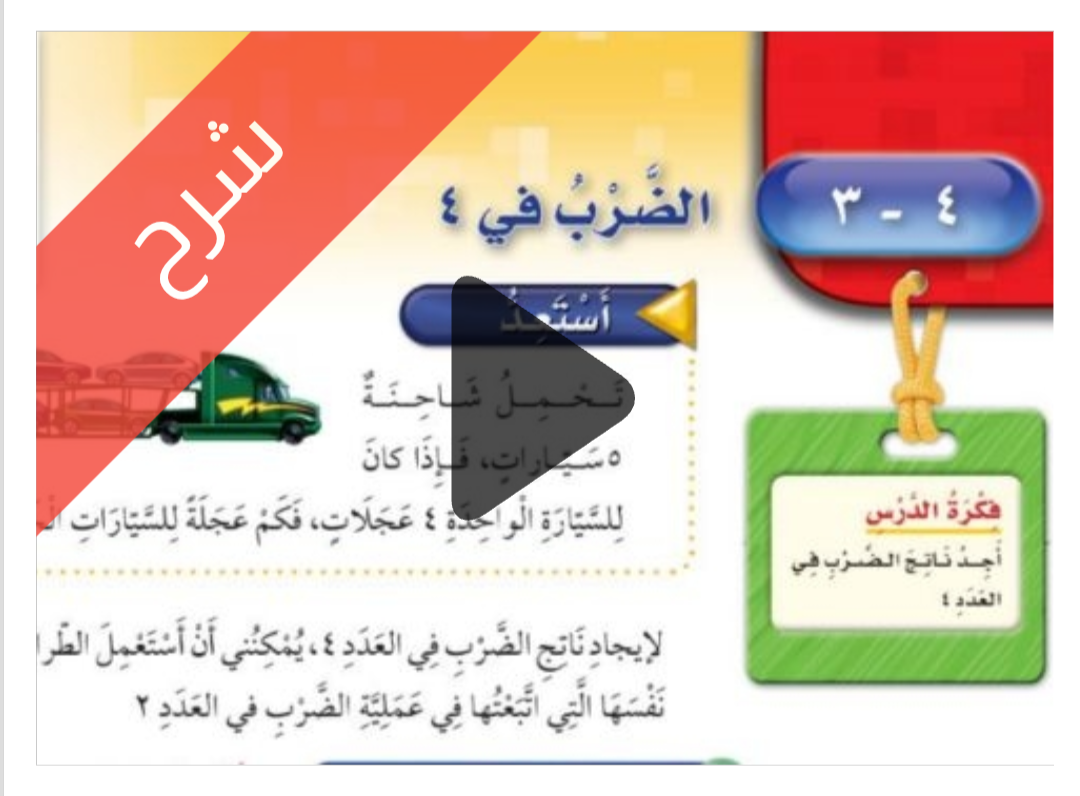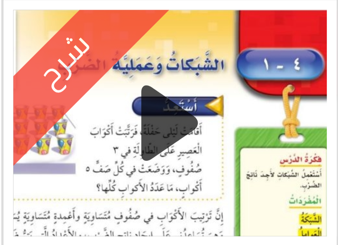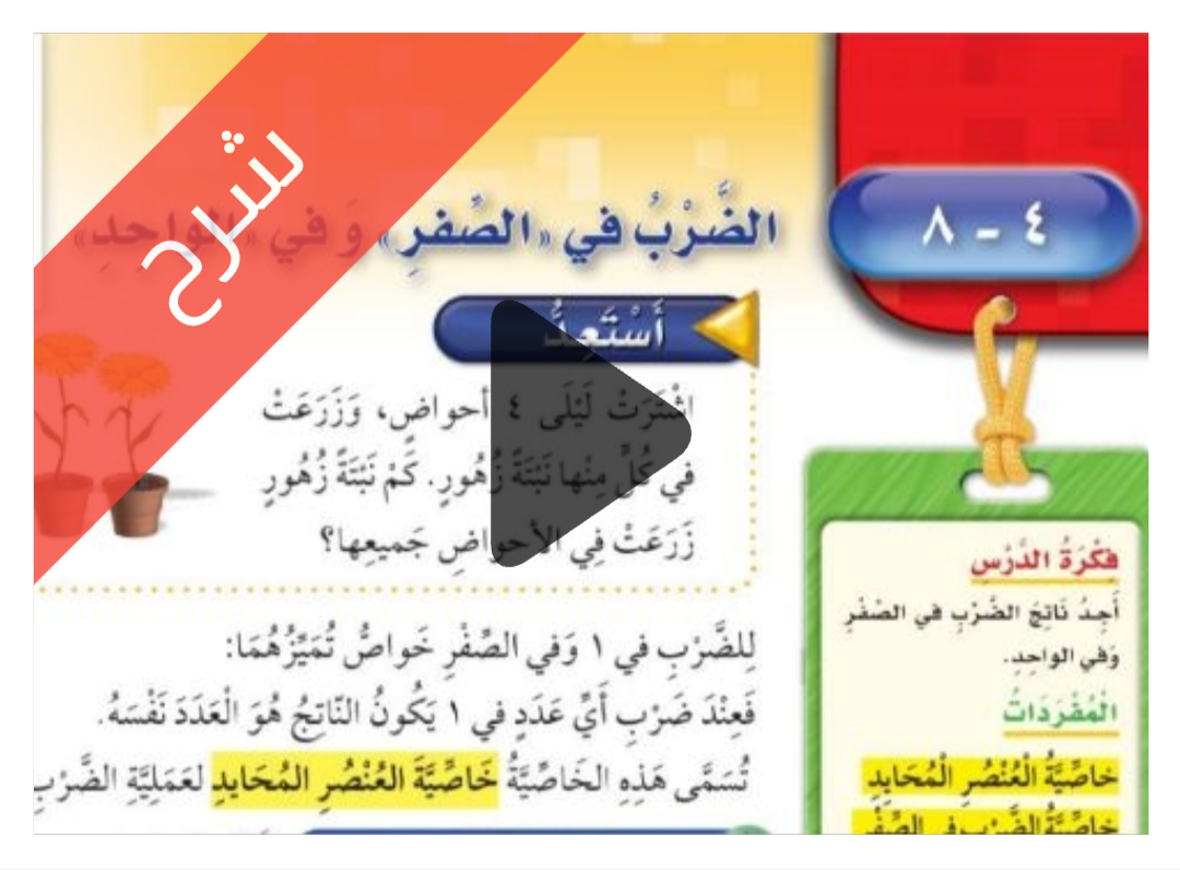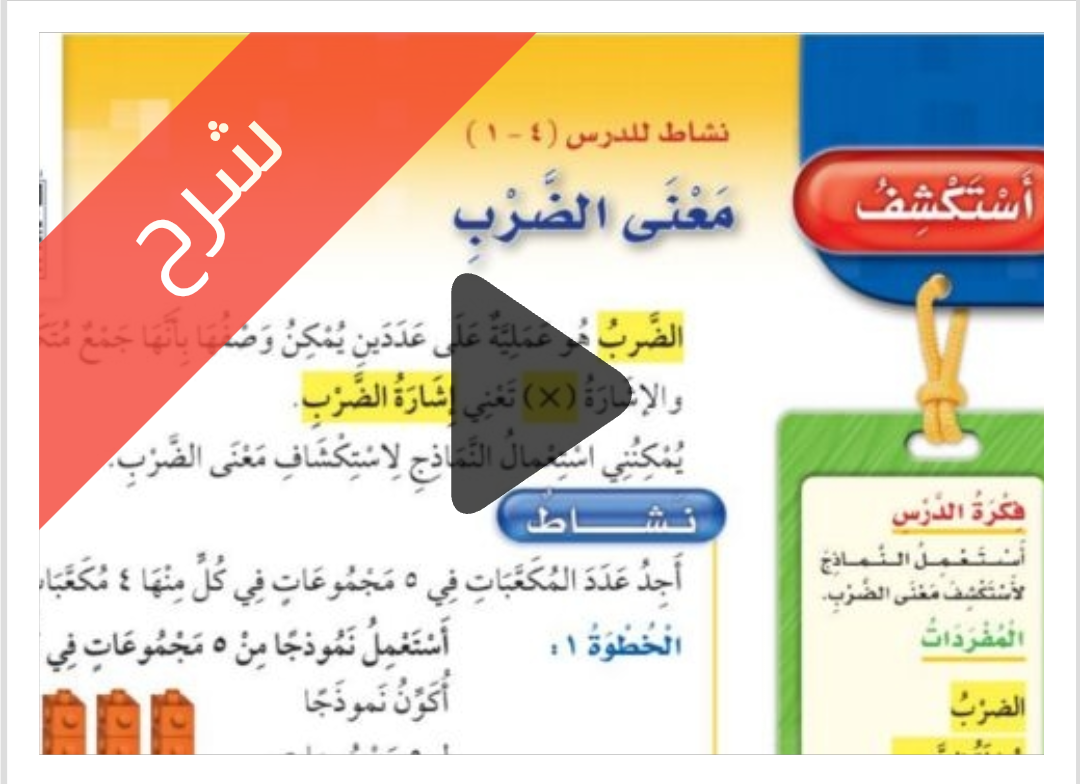 شرح دروس الفصل الرابع الضرب 1 مادة الرياضيات ثالث ابتدائي الفصل الدراسي الأول ف١