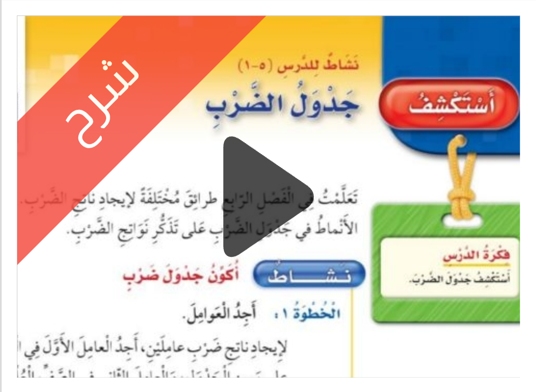 شرح دروس الفصل الخامس الضرب 2 مادة الرياضيات ثالث ابتدائي الفصل الدراسي الأول ف1